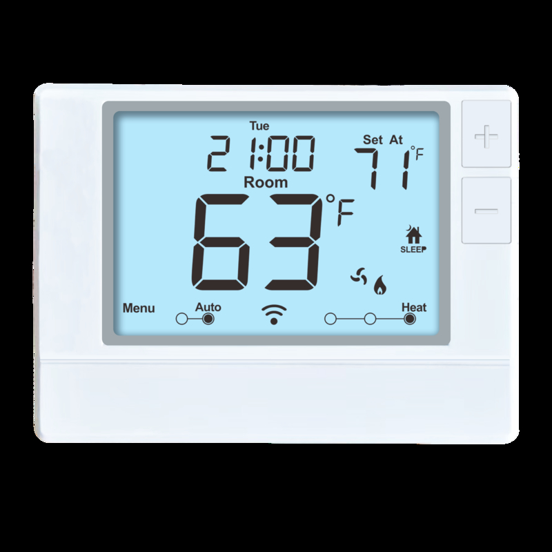 নন প্রোগ্রামেবল থার্মোস্ট্যাট-এ 5.92 বর্গ ইঞ্চি (3825mm²) এর একটি বৃহৎ ডিসপ্লে রয়েছে, যা সেটিংস পড়া এবং নেভিগেট করা সহজ করে তোলে। ডিসপ্লেটি নীল, সাদা বা সবুজ - এই তিনটি ব্যাকলাইট রঙের বিকল্পের সাথে উন্নত করা হয়েছে, যা আপনাকে আপনার পছন্দ অনুসারে থার্মোস্ট্যাটটি কাস্টমাইজ করতে এবং আপনার বাড়ির সাজসজ্জার সাথে মানানসই করতে দেয়।