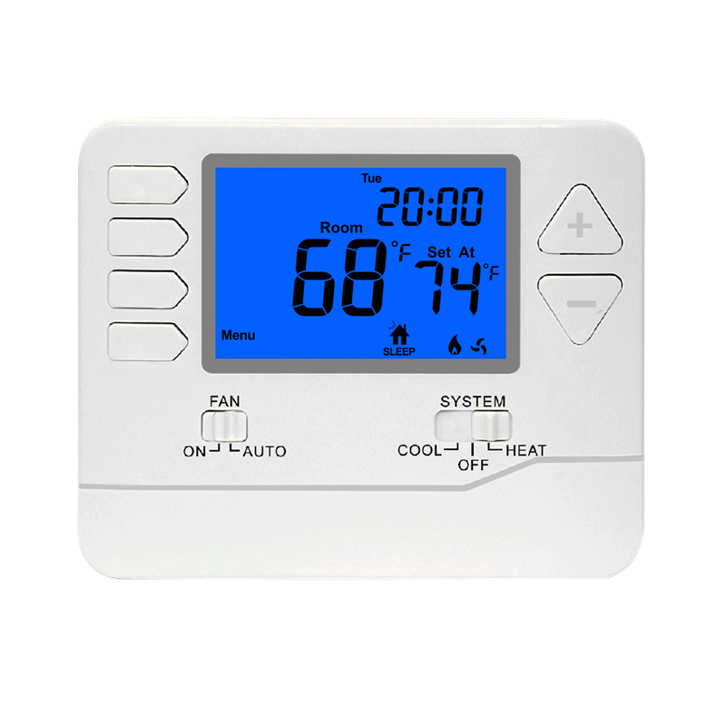 7 দিনের হোম থার্মোস্ট্যাট একটি বহুমুখী এবং অত্যন্ত দক্ষ ডিজিটাল থার্মোস্ট্যাট কন্ট্রোলার যা আপনার বাড়ি বা অফিসের পরিবেশের জন্য সর্বোত্তম তাপমাত্রা ব্যবস্থাপনার জন্য ডিজাইন করা হয়েছে। এই ইলেকট্রনিক রুম থার্মোস্ট্যাট নমনীয় প্রোগ্রামিং বিকল্পগুলি অফার করে যা আপনাকে আপনার জীবনযাত্রার সাথে মানানসই করার জন্য গরম এবং শীতল করার সময়সূচী তৈরি করতে দেয়। এর উন্নত 7 দিন, 5/1/1 দিন, বা নন-প্রোগ্রামেবল প্রোগ্রামিং মোডগুলির সাথে, এই থার্মোস্ট্যাট আপনার HVAC সিস্টেমের উপর সুনির্দিষ্ট নিয়ন্ত্রণ নিশ্চিত করে, আরাম বাড়ায় এবং একই সাথে শক্তি সাশ্রয় করে।