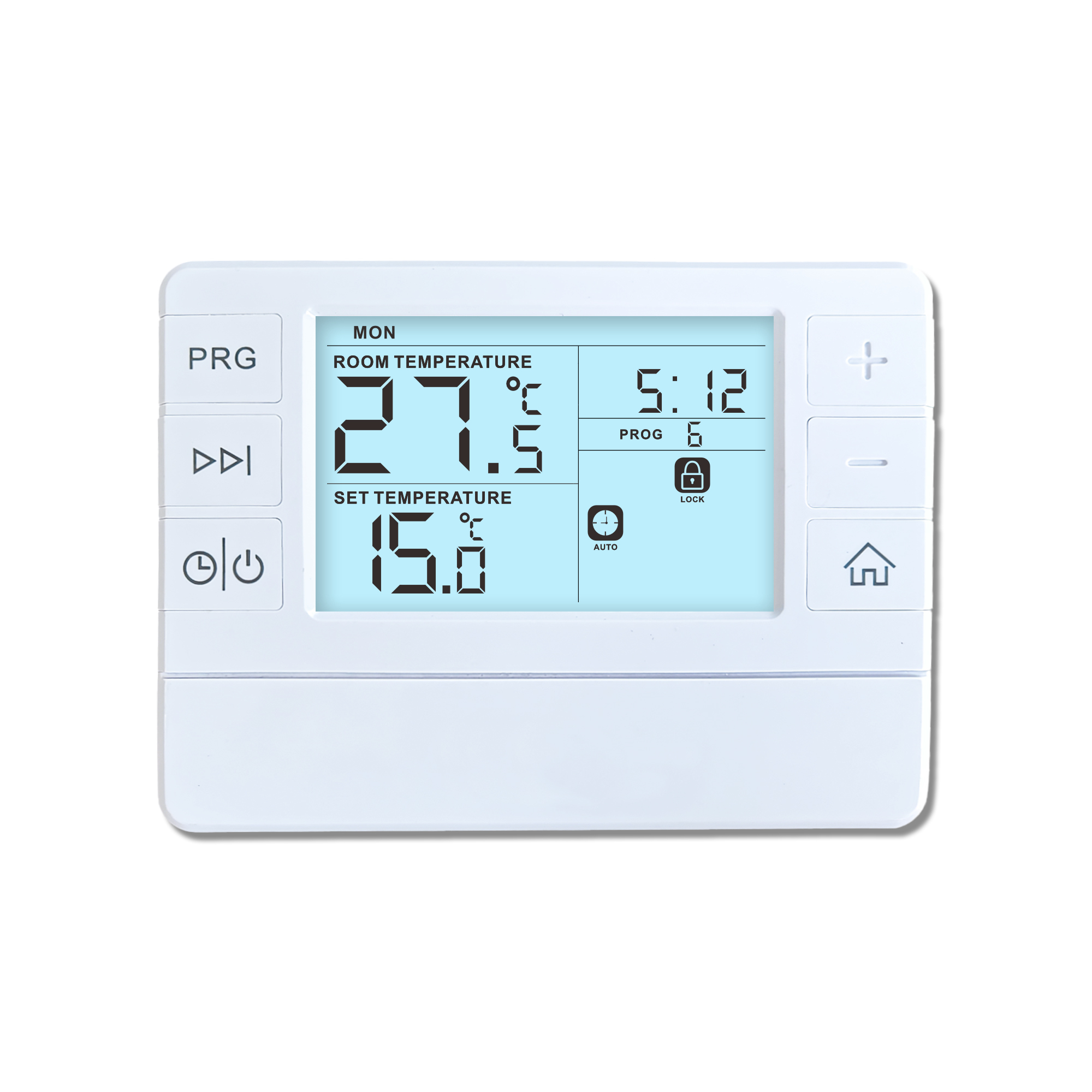 | বিশেষভাবে তুলে ধরা: | হোয়াইট ডিজিটাল রুম থার্মোস্ট্যাট,৭ দিনের প্রোগ্রামযোগ্য বয়লার থার্মোস্ট্যাট,24V এসি ডিসি সুইচযোগ্য থার্মোস্ট্যাট |