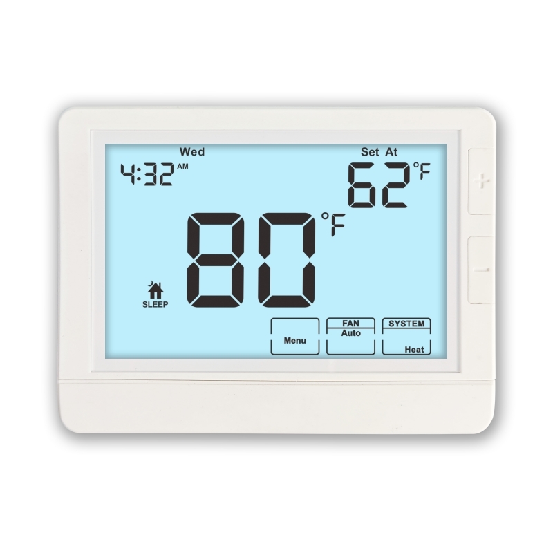 থার্মোস্ট্যাটটি 8.18 বর্গ ইঞ্চি আকারের একটি বিশাল ডিসপ্লে নিয়ে গর্ব করে, যা একটি পরিষ্কার এবং সহজে পাঠযোগ্য ইন্টারফেস প্রদান করে। বৃহৎ ডিসপ্লে তাপমাত্রা সেটিংস, সিস্টেম মোড এবং প্রোগ্রামিং সময়সূচী স্পষ্টভাবে দেখিয়ে ব্যবহারকারীর মিথস্ক্রিয়া বাড়ায়। এই বৈশিষ্ট্যটি তাদের জন্য বিশেষভাবে উপকারী যারা জটিল মেনুগুলির মাধ্যমে নেভিগেট করার ঝামেলা ছাড়াই একটি সহজ এবং স্বজ্ঞাত নিয়ন্ত্রণ প্যানেল পছন্দ করেন।
