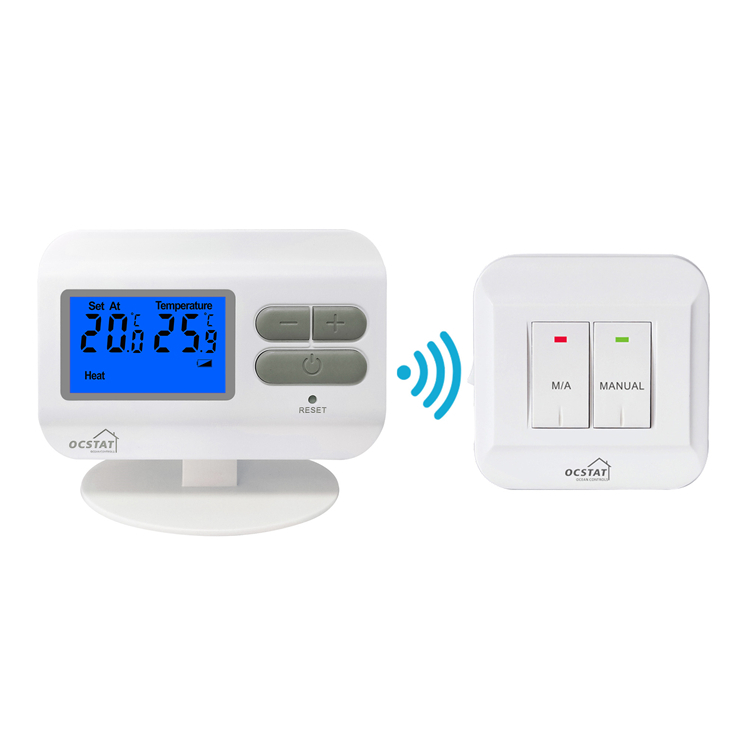 OCSTAT ওয়্যারলেস রুম থার্মোস্ট্যাট, মডেল ST2301RF, একটি উন্নত ডিজিটাল থার্মোস্ট্যাট কন্ট্রোলার যা বিভিন্ন গরম করার সিস্টেমের জন্য সঠিক তাপমাত্রা নিয়ন্ত্রণ সরবরাহ করার জন্য ডিজাইন করা হয়েছে।গুয়াংডং থেকে, চীন, এই পণ্যটি সিই, এফসিসি এবং আইএসও সহ সার্টিফিকেশন সহ আন্তর্জাতিক মানের মান পূরণ করে। এর বেতার নকশা ব্যতিক্রমী সুবিধা এবং নমনীয়তা প্রদান করে,এটি আধুনিক গরম করার জন্য একটি আদর্শ সমাধান.